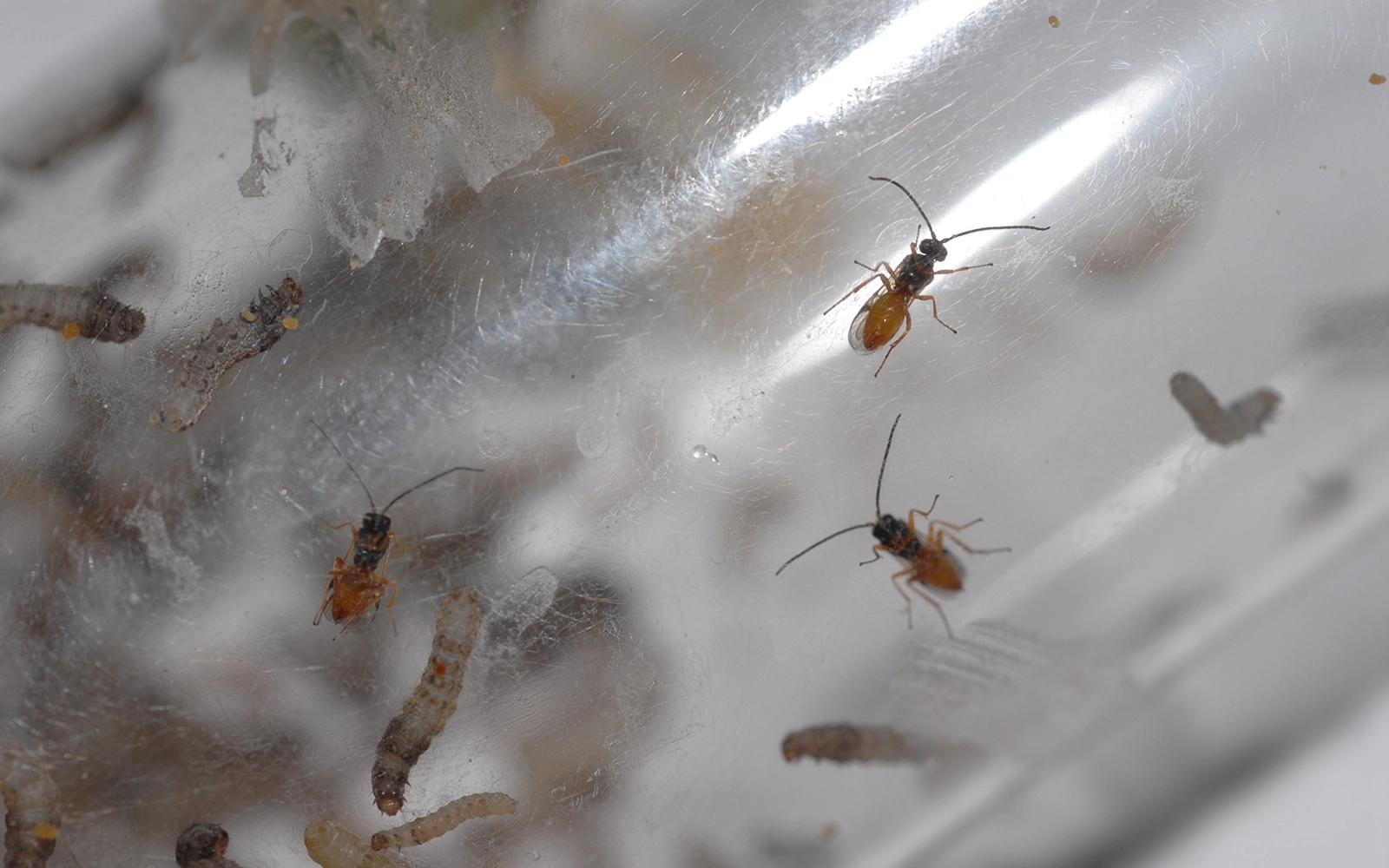For delicate insects (e.g., moths or flies), the preferred collection method is indoor rearing, which also helps prevent the spread of parasitoids or diseases. Collect weed material containing larvae or pupae in fall or winter and store it at 40–46°F (4–8°C) or in an unheated space in cold climates. Two to three weeks before emergence, move the material to room temperature in fine‑mesh cages or breathable containers. Remove and destroy any emerging parasitoids, which often resemble tiny wasps.