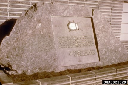 A monument in California, erected in honor of Chrysolina spp. USDA ARS European Biological Control Laboratory, Bugwood.org