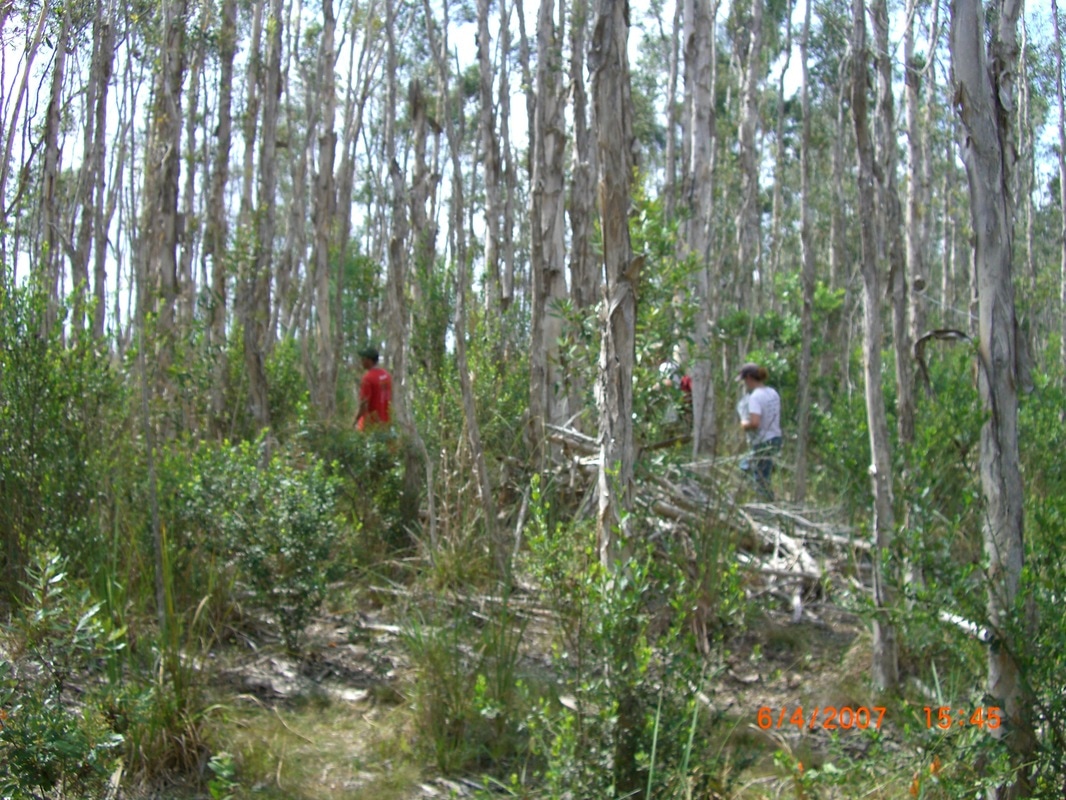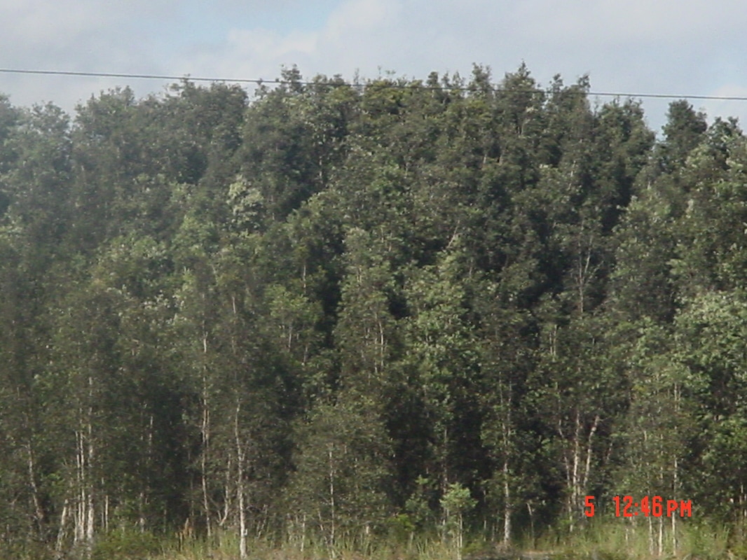 Melaleuca, Melaleuca quinquenervia, before and after release of biocontrol agents in South Florida. Note fallen melaleuca trees due to defoliation, dieback, shrunken root mass, open canopy, and migration of new species in the understory.